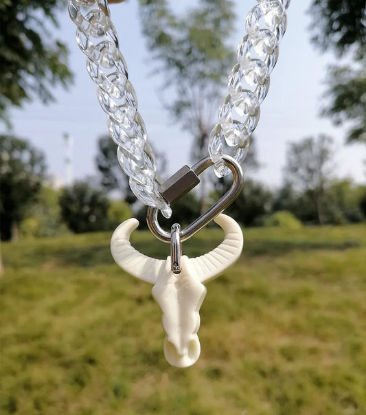 Acrylic Chain Lock Bull Pendant. Unisex Jewelry